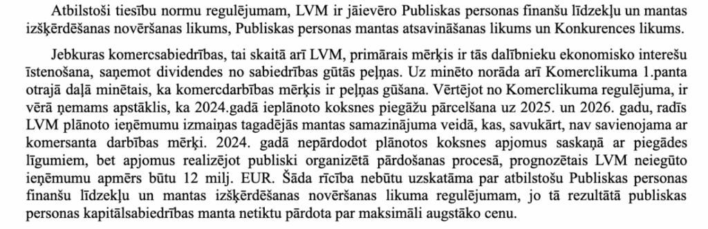 Rezumējot – kokrūpniecības nozarē nebija ārkārtas situācija, tā nebija jāglābj (ja vien par nozari neuzskata Mierkalnu). Starp citu, Ministru Kabinets tā arī ne 2023. gadā, ne arī vēlāk nav pieņēmis lēmumu par ārkārtas situāciju kokapstrādē attiecīgajā periodā, uz kuru kā kvalificējošos apstākli norādīja LVM. Vienkārši, alkatīgi krāpnieki sadarbībā ar Ministru Kabinetu iedzīvojās uz valsts rēķina. Kolektīva valsts īpašuma zādzība notika bez jebkāda sabiedriski nozīmīga iemesla, faktiski, lai izglābtu vienu Mierkalnu no maksātnespējas.