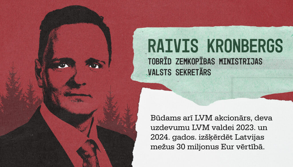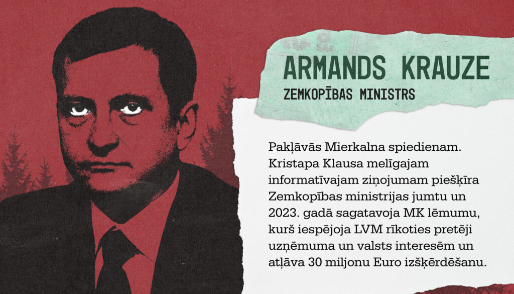 Zemkopības ministrijas vadība, būdama informēta par Latvijas valsts mežu negatīvo slēdzienu, uz sagrozītas informācijas pamata panāca atsevišķu kokrūpniecības uzņēmumu interesēm atbilstošu, viņiem nepienākošos atbalsta sniegšanu laika posmā no 2024. gada 1. janvāra līdz šim brīdim, kā rezultātā no valsts budžeta tika izšķērdēti vairāk nekā 30 miljoni eiro.